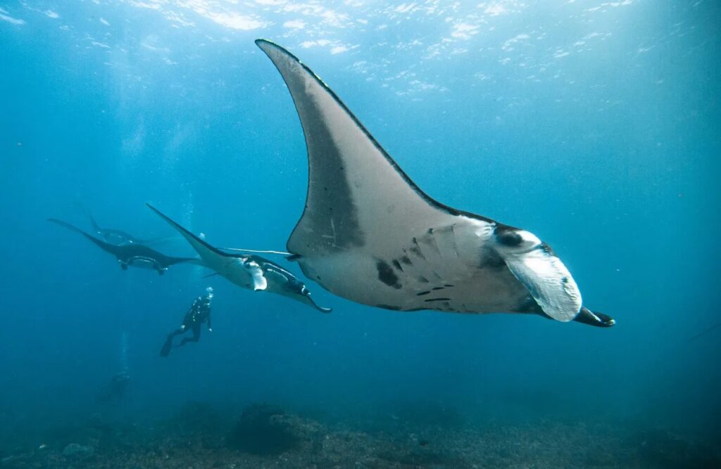 Start your adventure at Manta Point, one of the best locations in Nusa Penida to encounter majestic manta rays. Known for its deeper waters, this spot offers a unique opportunity to observe these graceful creatures in their natural habitat. Surrounded by rich marine life, snorkeling here feels like entering a vibrant underwater world.